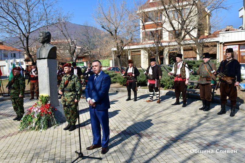 Венци и цветя бяха поднесени и от името на народния представител Десислава Танева, командира на военно формирование 22220 полк. Любомир Вачев и началника на РУО – Сливен Боян Аксаков.
