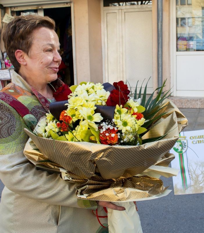 „Вашата личност и творчество са ярък пример за подражание и гордост за Сливен. Вие сте силна жена, един съвременен будител и творец. Дерзайте в целите и начинанията си, и не спирайте да вдъхновявате младите хора“, пише в поздравителния адрес на кмета Радев.