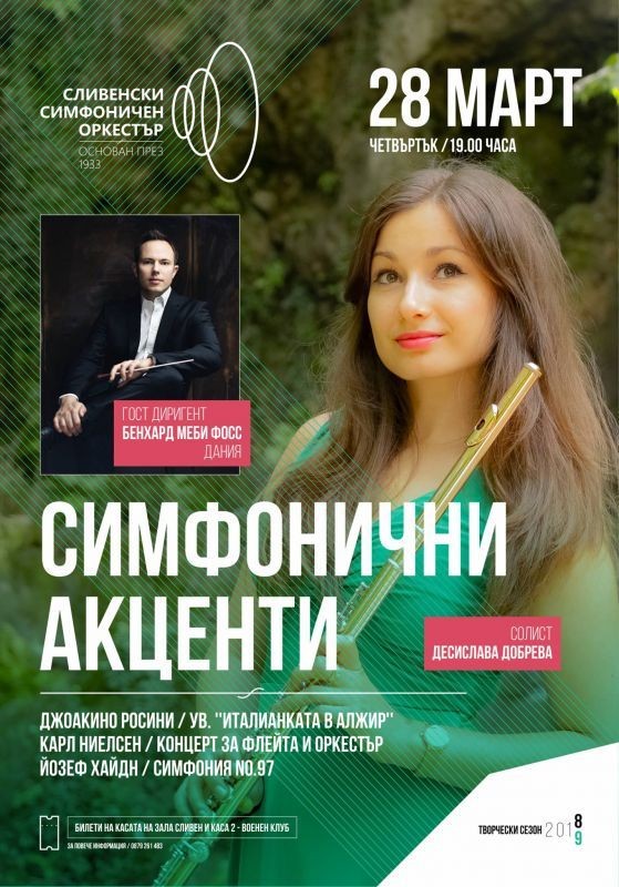 Гост-диригент ще бъде Бенхард Меби Фосс, Дания и солист Десислава Добрева.
