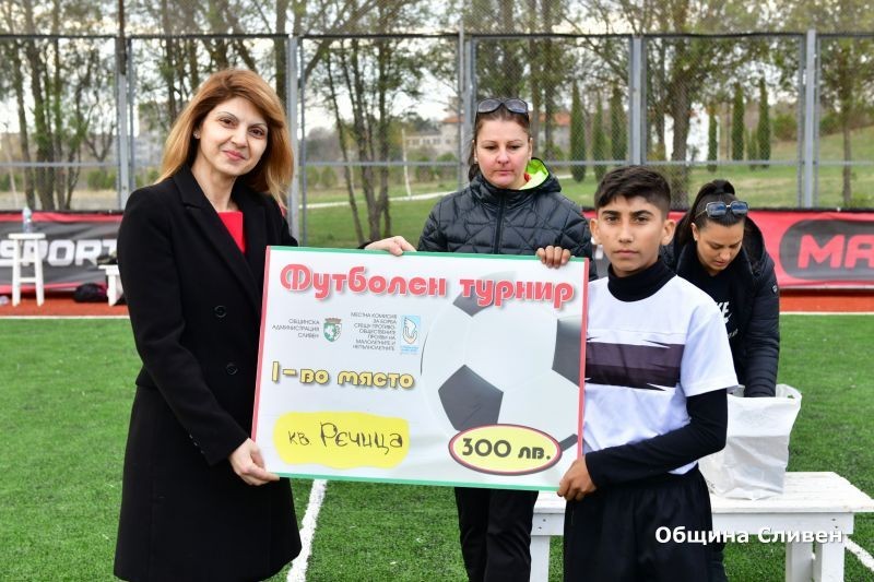 Финалът на Петия пролетен турнир по футбол за училищата в населените места от община Сливен се проведе днес. На спортната площадка в кв. „Младост“ сили премериха отборите на училищата ОУ „Д-р Петър Берон“, с. Желю Войвода, ОУ „Св. Паисий Хилендарски“, с. Тополчане, ОУ „Найден Геров“, с. Гавраилово и ОУ „Св. Св. Кирил и Методий“ в кв. „Речица“. Малко по-късно се състоя и официалното награждаване. Купите и наградите на финалистите връчи заместник – кметът Пепа Чиликова. Тя поздрави всички деца за участието им в турнира, както и за старанието и подготовката, които са положили.