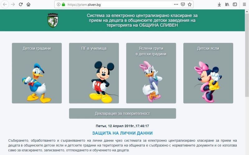 На 12 април 2019 г. бяха публикувани резултатите от класирането в детските градини на територията на Община Сливен.