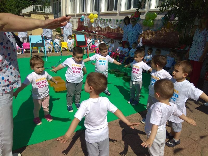 На пъстро украсена сцена на двора на детското заведение малчуганите демонстрираха своите спорни умения, танцови и певчески способности. Децата изпълниха и етюди от приказки, а големите ученици ги поздравиха с празника.