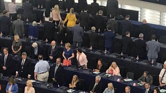 АНГЛИЙСКИ И ПОЛСКИ ЕВРОДЕПУТАТИ ОБЪРНАХА ГРЪБ ПРИ ХИМНА НА ЕВРОПА