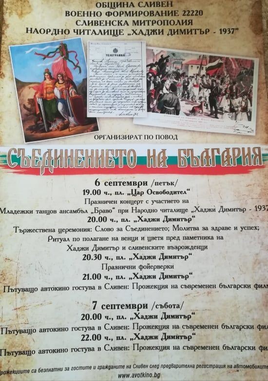 ОБЩИНА СЛИВЕН КАНИ ГРАЖДАНИТЕ И ГОСТИТЕ НА ГРАДА ЗАЕДНО ДА ОТБЕЛЕЖИМ СЪЕДИНЕНИЕТО НА БЪЛГАРИЯ