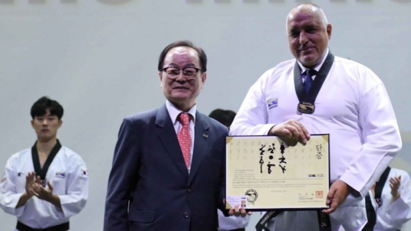 Премиерът Бойко Борисов беше удостоен с почетен девети дан по олимпийско таекуондо. Министър-председателят заслужи високата чест по време на посещението си в световната централа на този спорт KUKKIWON в Република Корея. За да заслужи най-високият дан в таекуондото, Борисов трябваше да счупи дъска с ръка.