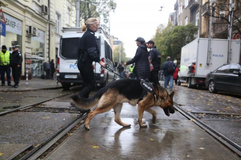 В опазването на обществения ред са включени и полицейски кучета. Паралелно със заседанието на кадровиците се провеждат протести "за" и "против" кандидатурата на Иван Гешев, които буквално са под прозорците на сградата на съвета.
