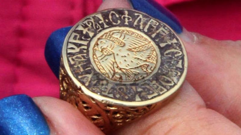 НИМ ПОКАЗВА ИМПЕРАТОРСКИЯ ПРЪСТЕН ОТ КАЛИАКРА И СЪКРОВИЩЕТО ОТ "БАЛЪК ДЕРЕ"