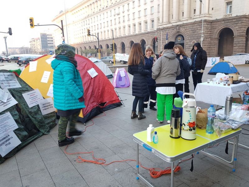 Участниците в започналия вчера протест на медицински специалисти с искане за реформи и по-достойни възнаграждения изпълниха заканата си и пренощуваха в палатките, разпънати пред Министерския съвет. Това съобщи за "Хоризонт" медицинската сестра Мая Илиева, лидер на наскоро създадения Синдикат на медицинските специалисти. По думите ѝ цяла нощ са останали около 15 души.