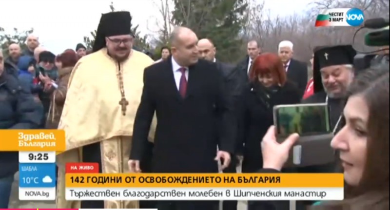 Президентът Румен Радев пристигна в град Шипка, където се отслужва благодарствен молебен в храма "Рождество Христов". Според него "отмяната на официалните чествания на Шипка е манипулация." "Оказа се че софийският щам е много безобиден и там всякакви мероприятия на открито са позволени, докато щамът на Шипка се оказа много опасен и мероприятията се отмениха. Надявам се със същото настървение управляващите наистина да мислят за здравето на българите. Честит празник на всички, които не се поддават на манипулацията и ще се качат на Шипка!", каза Румен Радев.