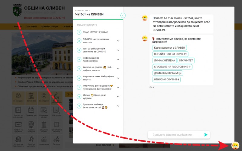 В страницата на Община Сливен чатботът е позициониран в раздел „Важна информация за COVID-19”, в посочения по-долу линк. От фирмата добавят и данни конкретно за Сливен.