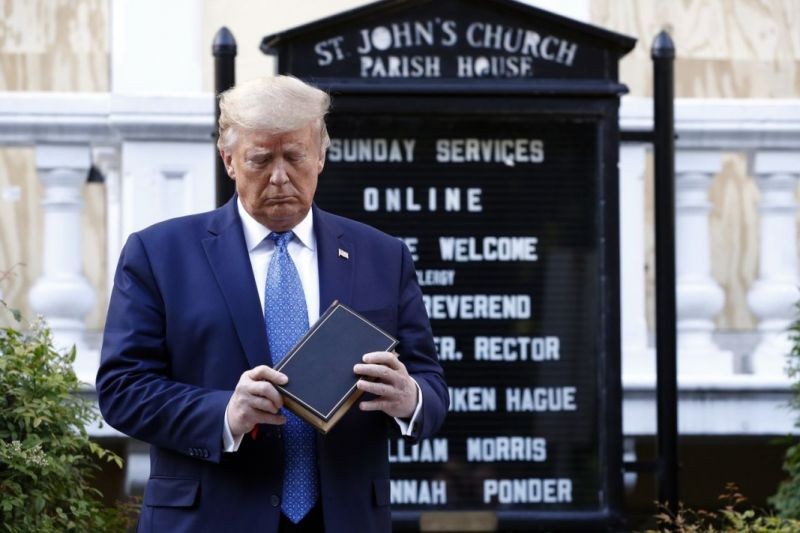 След като президентът предупреди, че може да изпрати армията в райони, където кметове и губернатори не могат да спрат насилието, той отиде до епископалната църквата „Сейнт Джордж“, където позира за снимки с дъщеря си Иванка и главния прокурор Уилям Бар.
