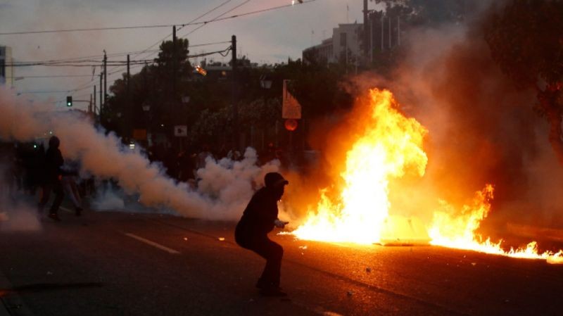 Безредици избухнаха край американското посолство в Атина снощи, задържани са 12 души. Според изданието "Етнос" анархисти са хвърляли срещу полицаите камъни и коктейли "Молотов", запалили са контейнери с боклук и са разбили витрини на магазини. В отговор полицията използвала сълзотворен газ.