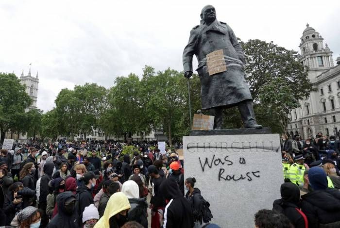 На постамента е написано със спрей "Бил е расист" и "Животът на чернокожите има значение".