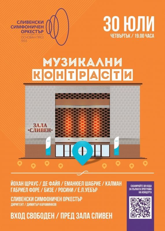 Сливенският симфоничен оркестър за пореден път ще зарадва почитателите на класическата музика с концерт. Събитието ще се състои на 30 юли, четвъртък от 19 часа.