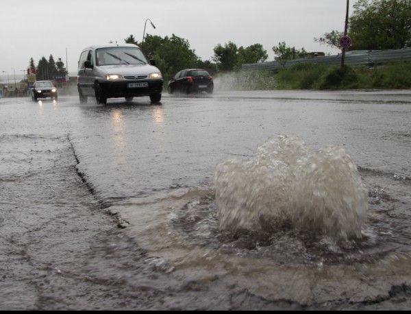 Поройният дъжд във Враца пък е разкъртил част от улица. В социалните мрежи са публикувани снимки, на които се вижда как асфалтът е повдигнат и начупен точно по средата на пътното платно.
