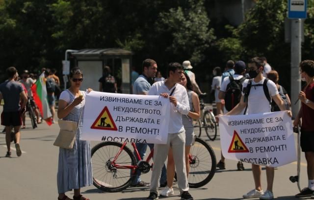 Протестните действия с настояване за оставките на правителството и на главния прокурор продължават. Движението на Орлов мост бе спряно още вчера от протестиращи. Днес те са издигнали плакат с надпис „Извинете за неудобството, държавата е в ремонт“ на напълно блокираното за движение на автомобили кръстовище.