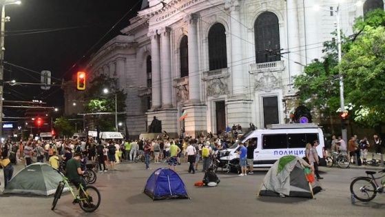 Тази сутрин кръстовището при Софийския университет е блокирано от палатки на протестиращи срещу правителството и бусове на полицията, които са затворили всички платна в посока Орлов мост. Дотук се стигна след като до сутринта полицията не разреши на бус на организацията "Системата ни убива" да премине от университета до Орлов мост, където от дни има палатков лагер на протестиращи. Участници в демонстрациите на няколко пъти се опитаха безуспешно да освободят буса, в който имаше майки на деца с увреждания. Преди това те проведоха шествие до дома на премиера в Банкя. Допреди това нямаше белези на напрежение около протеста.