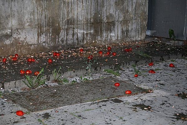 След кратки речи, демонстрантите тръгнаха на шествие към сградата на МВР, където тя беше замеряна с яйца и домати.