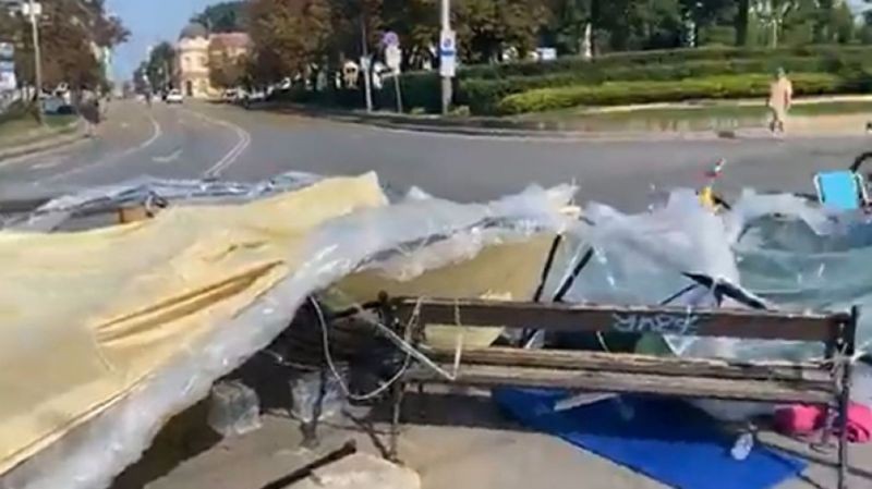 „Тази сутрин, трима мъже, които очевидно не бяха дошли просто за каузата, започнаха да бутат палатки и тенти. Аз бях в по-малката палатка. Те се опитаха да я обърнат, единият ме ритна, аз казах: „Ей, има хора тук!“. Тях това обаче въобще не ги интересуваше. Продължиха да влачат палатката, след което продължиха да бутат пейки, да разбиват. Въобще не ги интересува, че има знамена на земята. Бяха агресивни, казаха: „Идваме да почистим“. Целият инцидент приключи с разруха, както като цяло управлението на страната“, каза пред БНР Анна-Мария, една от протестиращите в палатковия лагер пред СУ.