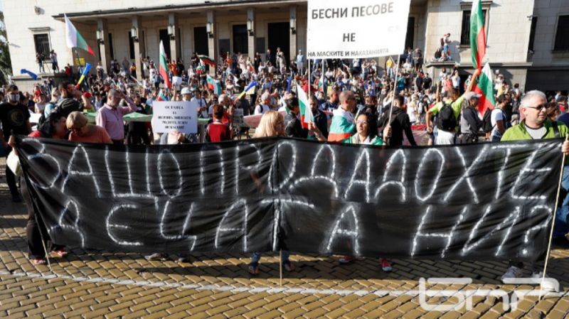 В хода на протеста противниците на премиера и на главния прокурор разпънаха пред Министерския съвет огромен трибагреник, пяха български химн, издигнаха лозунг към полицаите: "Ти си един от нас".