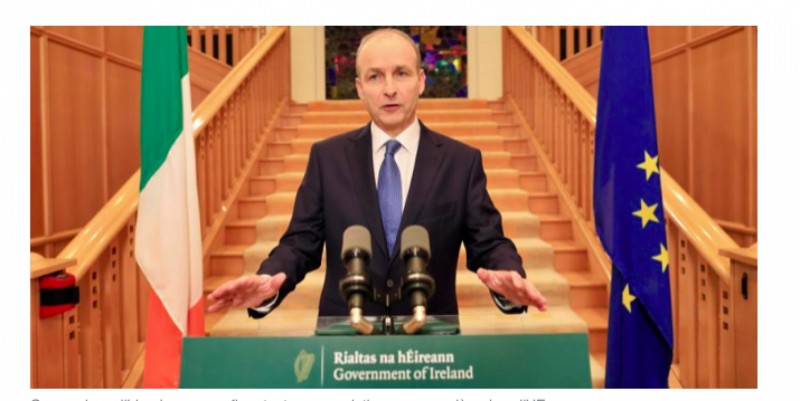 „Молим всички в страната да си останат у дома“, каза Майкъл Мартин. Ирландците ще могат да напускат домовете си само в радиус от пет километра. "Ако обединим усилията си през следващите шест седмици, ще имаме възможност да отпразнуваме Коледа както трябва", каза премиерът.