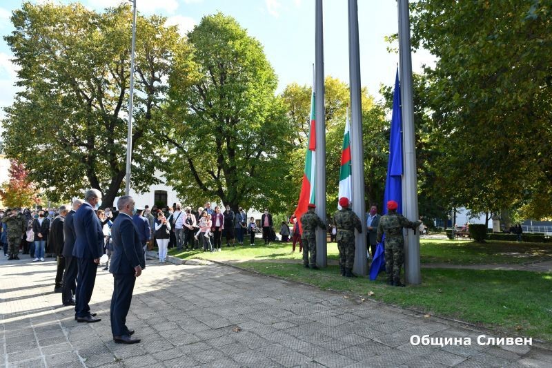 На площад „Хаджи Димитър“ се проведе и ритуал с издигане на националното знаме, знамето на Сливен и Европейската общност. Благодарствен молебен за здраве и добруване на гражданите на Сливен отслужи Негово Високопреосвещенство Сливенският митрополит Иоаникий.