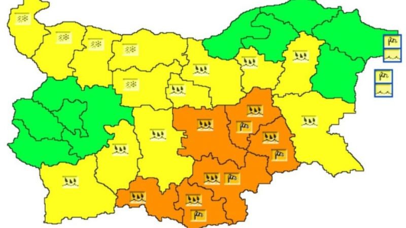 ОРАНЖЕВ КОД ЗА 6 ОБЛАСТИ В БЪЛГАРИЯ, ЖЪЛТ КОД - ЗА 13
