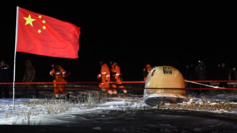 Китайска космическа капсула, пренасяща 2 килограма проби, взети от лунната повърхност, се приземи днес в северната част на Китай, съобщи държавната телевизия, цитирана от ДПА.