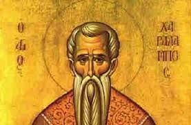 Свети Харалампий е живял през II и началото на III век. Той бил епископ в Тесалия, днешна Гърция. Езическите власти го изправили на съд. Дълго го убеждавали да се отрече от вярата си и да се поклони на идолите. Епископът обаче решително отказал. Тогава го подложили на страшни изтезания, но старецът с търпение и мъжество понасял всичко. Раните му по чудодеен начин заздравявали всяка нощ.