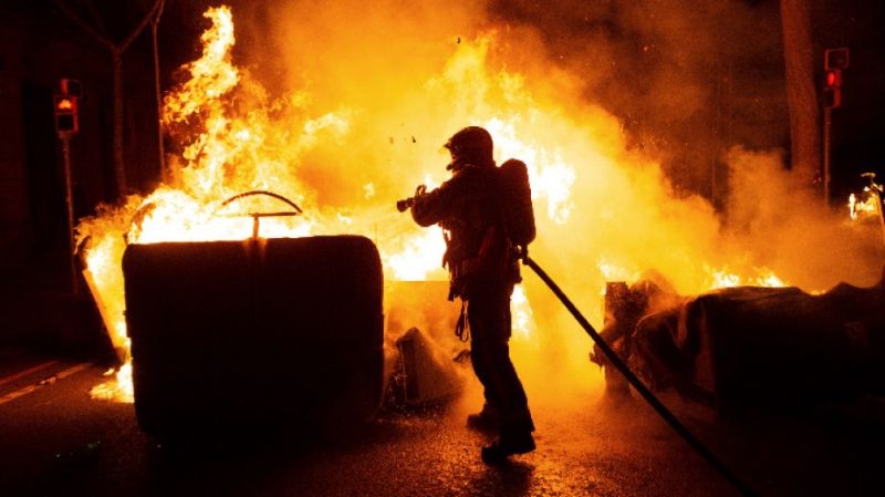 В Барселона, подобно на предишните дни, демонстрацията започна мирно, но през нощта протестиращи замеряха полицаи с камъни, бутилки и други предмети. Безредици имаше и на прочутата пешеходна улица "Рамбла" .