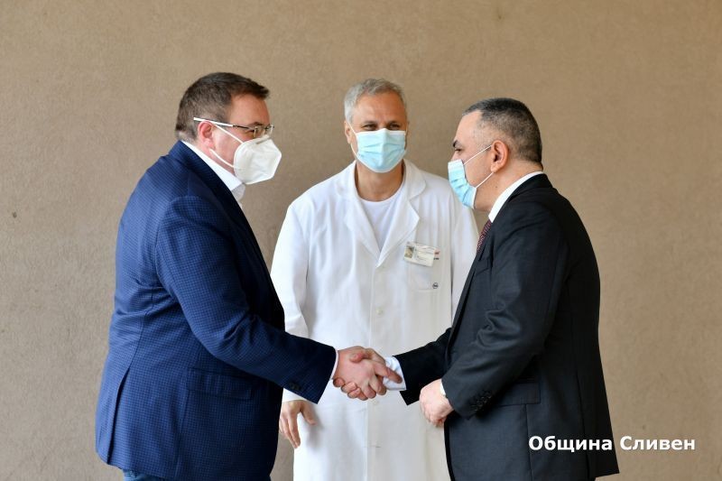 Ситуацията в Сливен е под контрол и поздравявам кмета Стефан Радев за допълнителните противоепидемични мерки, предприети от Общината за безопасното протичане на изборния ден, заяви министърът на здравеопазването проф. Костадин Ангелов по време на днешното си посещение в областната болница „Д-р Иван Селиминиски“. Там той се срещна с кмета Стефан Радев и директора на болничното заведение д-р Васислав Петров, с които заедно посетиха отделения за лечение на пациенти с коронавирус и Центъра за спешна медицинска помощ.
