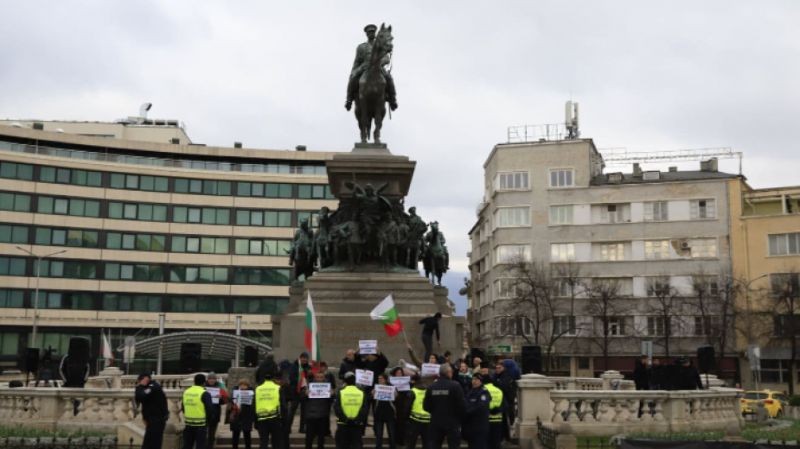 Протестиращи са се събрали пред сградата на парламента с надпис "Съединението прави силата", където започва тържественото заседание, с което се открива новоизбраното 45-то Народно събрание. Те отправиха искане парламентът да се саморазпусне и да има нови избори и служебно правителство.