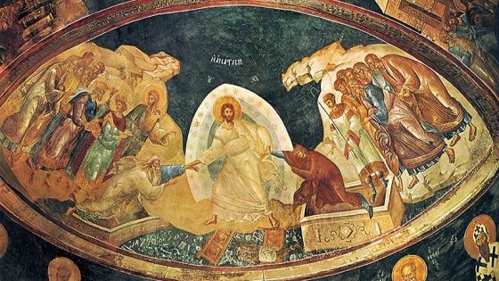 На Велика събота Синът Божий лежи в гроба като мъртъв човек. Положен в гроба, Той спасява света и отваря гробовете, разкъсвайки оковите на ада. В църковните песнопения се пее: