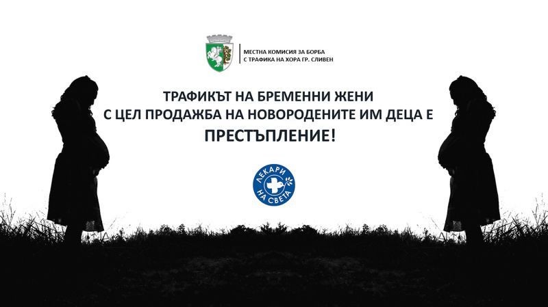 Местната комисия за борба с трафик на хора (МКБТХ), гр. Сливен, съвместно със Сдружение „Лекари на света”, гр. Сливен, стартират Информационна кампания за превенция на трафика на бременни жени с цел продажба на новородените им.