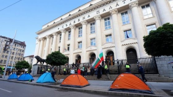 ПРОТЕСТИРАЩИ РАЗПЪНАХА ПАЛАТКИ ПРЕД СЪДЕБНАТА ПАЛАТА