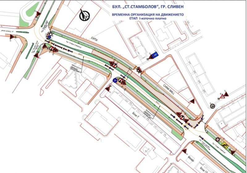 Започва първият етап от ремонта на пътните платна на бул. „Стефан Стамболов“. Ремонтните дейности ще стартират на 13 септември, понеделник. Той ще обхваща участъка от кръстовището на булевард „Панайот Хитов“ с бул. „Стефан Стамболов“ до кръстовището на бул. „Стефан Стамболов“ с бул. „Георги Данчев“, включително. Паралелно с дейностите ще бъде въведена временна организация на движението на четири участъка. Предвижда се затваряне на уличните платна и въвеждане на двупосочно движение на успоредния участък. Община Сливен апелира водачите на МПС и пешеходците, да спазват поставените пътни знаци, указващи временната организация на движение. В прикачените файлове се съдържа схема на временна организация за безопасност на движението за четирите участъка.