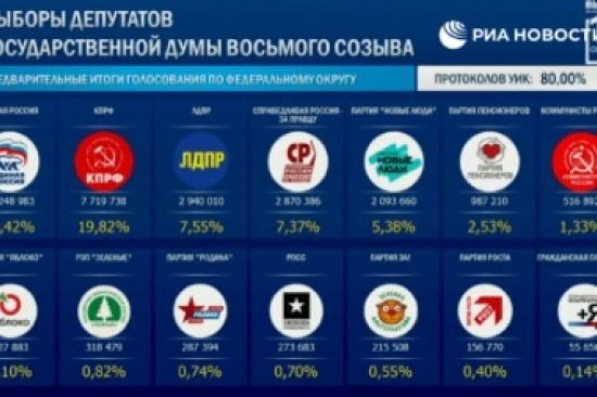Процентът на "Единна Русия" означава, че те ще получат около 120 депутати от пропорционалната листа. Така управляващата партия събира конституционно мнозинство - около 315 от общо 450 депутати, сочат изчисленията на политическите наблюдатели.