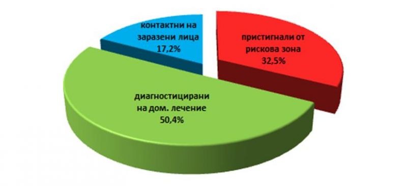 Сред заболелите са трима лекари, санитар, служител в лечебно заведение. Положителен резултат при изследванията е отчетен при учител и четирима ученици на възраст от 9 до 15 години. Съучениците на болните деца са поставени под карантина. Още 28 деца и младежи под 18 години са с COVID-19, сред тях са и две бременни момичета. Не се налага карантиниране на класове, тъй като заболелите не са посещавали училище. Епидемиологичните проучвания продължават.