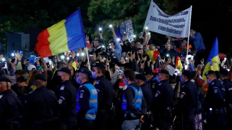 Хиляди демонстрираха снощи в Букурещ след призив на крайната десница срещу „задължителната ваксинация“, въпреки че Румъния регистрира нов дневен рекорд на случаите на Covid-19от началото на пандемията – 12 500 новозаразени, предаде АП.
