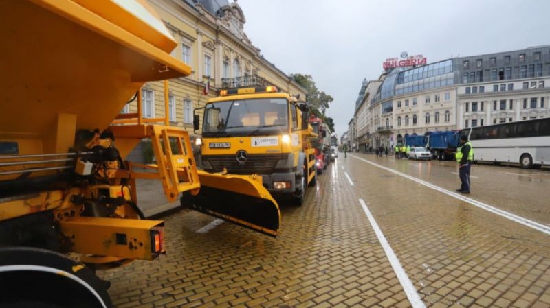 Тежкотоварни камиони на пътностроителните фирми, които протестират пред сградата на правителството, блокираха движението по булевардите „Дондуков“ и „Цар Освободител“ в отсечката от улица „Георги Раковски“ до района на президентството.