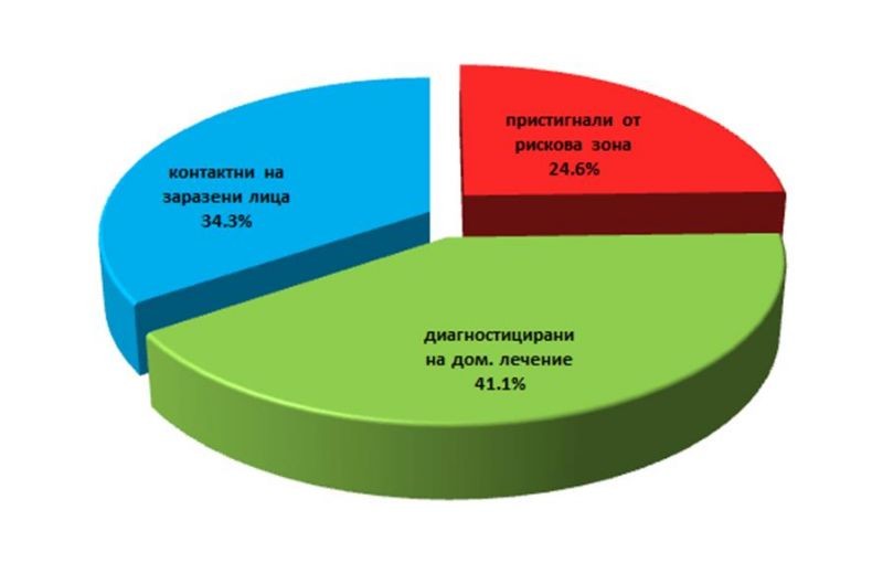 Под карантина са 2 082 души, като 41,1 процента от тях са болни, които провеждат лечението си в домашни условия, под наблюдението на личен лекар. Останалите карантинирани са контактни на заразени или пристигнали от рискови зони.