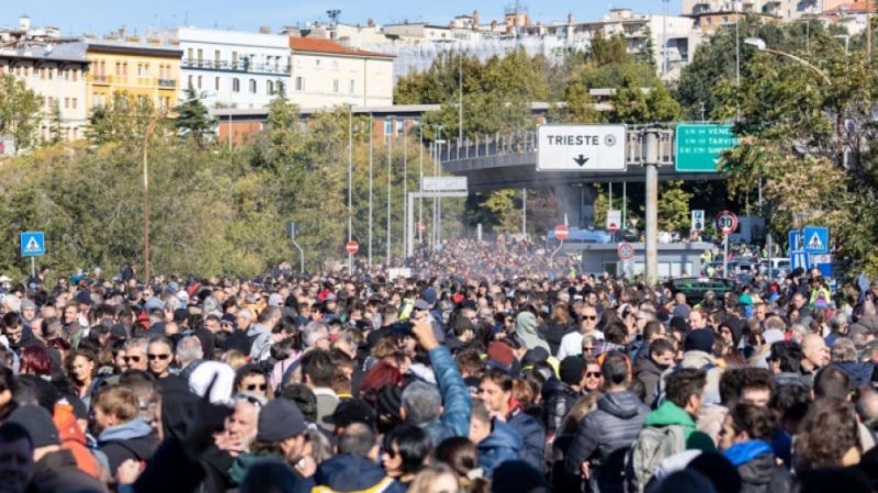 Пристанищни работници и служители на най-големите пристанища в Италия начело с Триест, където имат готовност да протестират докато зеленият Covid пропуск не бъде отменен, следвано от Генуа и Анкона, блокираха входовете без да пречат на когото желае да работи.