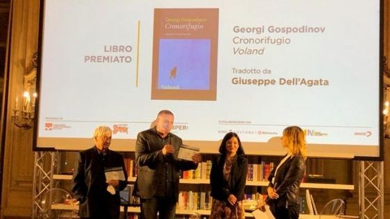 Романът на Георги Господинов "Времеубежище", който излезе през юни в Италия, в издателство "Воланд", в превод на Джузепе дел Агата, получи Европейската награда Стрега. Това стана на официална церемония на 17 октомври, на Международния панаир на книгата в Торино. За най-престижното отличие в Италия Господинов се съревновава за втори път, след номинацията на "Физика на тъгата", тази година с автори от Румъния, Франция, Испания и Германия - Ана Бландиана, Ерве дьо Телие, Айша де ла Крус и Ане Вебер.
