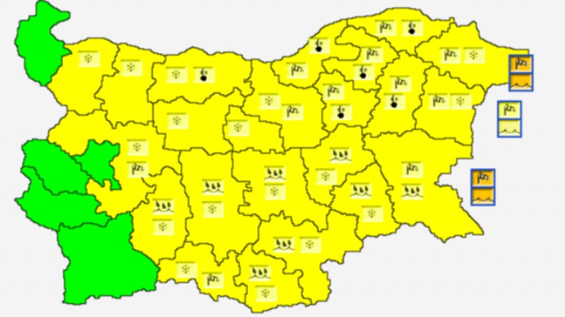 Само за София, областите Видин, Перник, Кюстендил и Благоевград няма предупреждение за опасност.