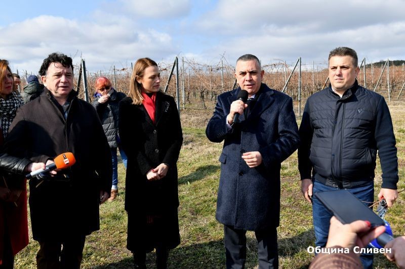 Кметът на Сливен Стефан Радев участва в празничното зарязване на лозята в село Еленово. Ритуалът се организира от Националната лозаро-винарска камара в лозовите масиви на винарска изба „Едуардо Миролио“.