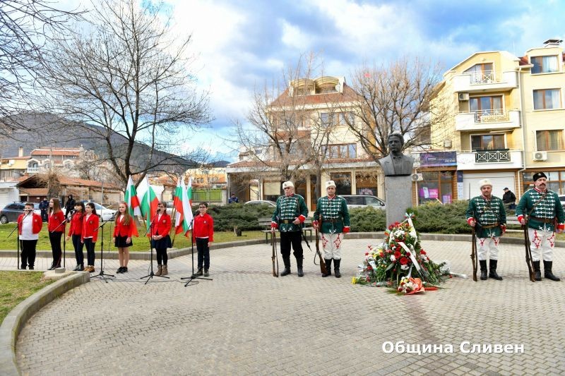 По-рано днес представители на Община Сливен поднесоха цветя на морената с релефа на Апостола пред храм „Св. Цар Борис Първи Покръстител”, както и на паметника на войводата Панайот Хитов, в чиято чета Васил Левски е бил знаменосец. От ППМГ „Добри Чинтулов” поднесоха цветя на плочата, изградена в памет на Михаил Икономов, Михаил Греков, Сава Геренов, Атанас Узунов и Пенчо Черковски – учители в класното училище и участници в комитетите, създадени от Васил Левски, както и на плочите и паметниците на неговите сподвижници в града – Георги Икономов, Сава Райнов, Нено Господинов – Брадата, Таньо войвода и др.