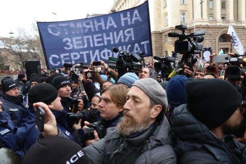 Докато депутатите заседават по гласуването на "Бюджет 2022", протестиращите скандираха "Оставка" и настояха за незабавното отпадане на зеления сертификат, а също на COVID тестовете в училище и задължителното носене на маски. Според демонстрантите в бюджета са заложени средства за сертификати и ваксиниране.