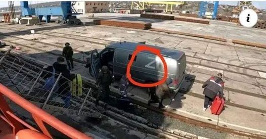 Костадинов публикува и снимка, на която се вижда, че нашите сънародници се евакуират и качват в бус на руските сили със знака „Z“, който се вижда на всяка тяхна военна техника по време на войната в Украйна.