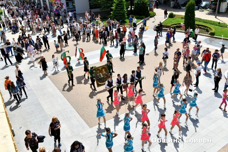 Празничният 24-и май в града под Сините камъни днес започна с шествие на ученици от сливенските училища. То стартира от Градската градина, премина по Главната улица и продължи до централния градски площад „Хаджи Димитър“. Там жители и гости на Сливен наблюдаваха тържествената церемония по издигане на националното знаме по повод Деня на светите братя Кирил и Методий, на българската азбука, просвета, култура и на славянската книжовност.