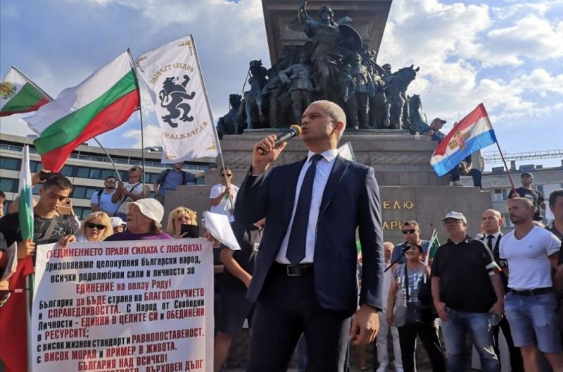 Лидерът на "Възраждане" взе думата на площата. "България е наша, няма да допуснем повече да ни управляват отвън", категоричен бе той.